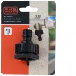 BLACK+DECKER adapter za slavinu s navojem 3/4''-1'' jednostavno spaja pribor za zalijevanje na slavinu. Izdržljiv dizajn. Otporan na vremenske uvjete, za dugotrajnu upotrebu. Dimenzije 40x40x48 mm, težina 21g. Crno narančaste boje.
