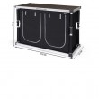 Berger Tampere sklopiva kutija za pohranu / kamperski ormarić L. Može se postaviti u sekundama i ima čvrst, lagan aluminijski okvir. Savršen je za uredno pohranjivanje posuđa, pribora za jelo, igara ili druge kamperske opreme. Praktična polica pruža dodatni prostor za začine, lonce ili hranu, a zahvaljujući podesivim nogama, kutija uvijek stoji sigurno - čak i na neravnom tlu. Dimenzije otvorenog (V x Š x D): 80x116x51cm. Dimenzije pakiranog (D x Š x V): 121x56x11.5 cm. Materijal okvira: aluminij, 28x28mm; materijal polica: obloženi lesonit s aluminijskim rubom; materijal navlake: 100% poliester. Težina: 13kg. Nosivost: do 30kg. Boja crna.