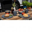 Berger Kynne set posuđa od polipropilena, 16 dijelova, plavi, za 4 osobe. Iznimno se lako čisti, otporan je na lomljenje i siguran je za hranu. Detalji o proizvodu: tanjur za večeru: d25cm, tanjur za desert: d20cm, zdjela: d14,2 cm, šalica (volumen): 360ml. Materijal: polipropilen (PP) / bez BPA. Težina: 2,1kg. Boja plava.