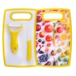 ALPINA daska za rezanje s nožem i keramičkom nožem za guljenje. Savršena za svakodnevnu pripremu u kuhinji. Jednostavno čišćenje i pohrana. Dimenzije 158x28x250mm, težina 240g. Zelene, žute, ljubičaste boje.