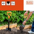 BLACK+DECKER mini lopata s drškom 67cm. Idealna za vrtlarenje, obradu tla i jednostavno rukovanje u bilo kojem vrtu. Težina 780g. Crno narančaste boje.