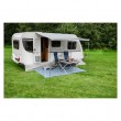 Nadstrešnica-tenda IdealII zaštitna od sunca za kampere i kamp kućice,sive boje. Širine 240cm, dužine 340cm, težine 9,52kg. Opseg isporuke: nadstrešnica za sunce, 3 teleskopska metalna stupa, užad, vreća za pakiranje(100% poliester)