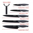 ALPINA kuhinjski noževi 32/23/19,5/13 cm. Svestrani kuhinjski noževi s neprianjajućim dnom za rezanje kruha, mesa i povrća. Ergonomske ručke osiguravaju udobno korištenje. Dimenzije 361x38x218mm, težina 421 g. Crne boje.