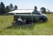 Thule Sun Blocker G2 Front - Zračno propusna prednja cerada za tende. Izdržljivi platneni materijal: mrežasta tkanina propusna za zrak. Brojne mogućnosti za kombinaciju s drugim ceradama. Tkanina je gurnuta u prednji profil. Širina min: 1.00m - max: 4.80m. Dimenzije: širina 380cm (za širinu tende 400cm), visina 170cm.