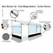 Thule Sun Blocker G2 Front - Zračno propusna prednja cerada za tende. Izdržljivi platneni materijal: mrežasta tkanina propusna za zrak. Brojne mogućnosti za kombinaciju s drugim ceradama. Tkanina je gurnuta u prednji profil. Širina min: 1.00m - max: 4.80m. Dimenzije: širina 430cm (za širinu tende 450cm), visina 170cm.