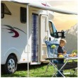 Ukrasna, praktična zavjesa za vrata za kamp kućice, kampere, šatore, tende i kod kuće. Lagana, bez dosadnog zveckanja. Štiti od letećih insekata, a istovremeno nudi hlad i privatnost. Pojedinačni pramenovi šanila (14/25) već su ugrađeni u montažnu tračnicu. Napravlena od šenilskog flisa, širina 56cm, dužina 205cm. Tamno plave i sive boje. Praktična torba za dostavu.
